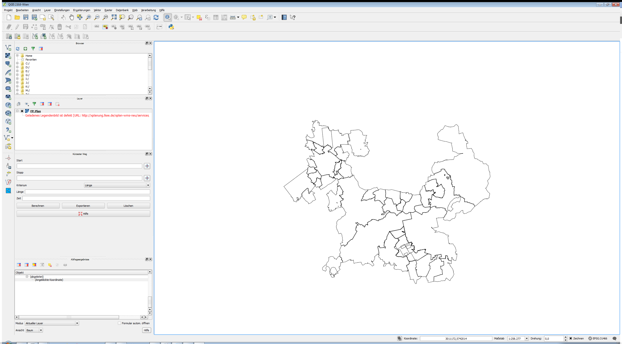 我想用EPSG:31466投影创建一个传单地图。我已经包括了proj4库和proj4leaflet插件。我计划使用这层包括fp_plan WMS服务。