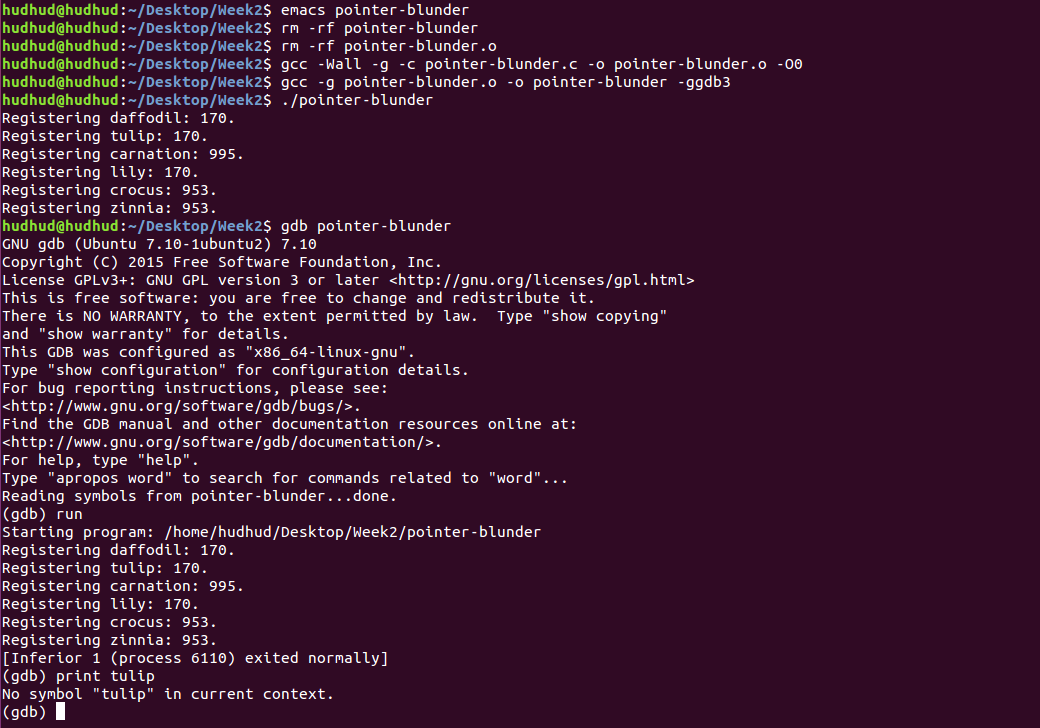 (gdb) print tulip您还可以在main开始时中断,然后前进,直到初始化变量为止: