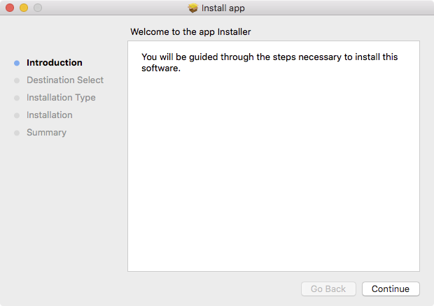 接下来,通过运行open app.pkg并按照屏幕上的GUI安装包: