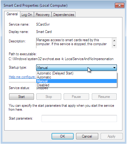 好了伙计们我修好了。正如MichałKomorowski和Jon已经回答的那样,问题是Smard服务没有运行。米哈ł科莫罗夫斯基的答案几乎是正确的。此外,我唯一要做的就是将启动类型设置为“手动”。在那之后,我可以启动智能卡服务,现在一切都正常。