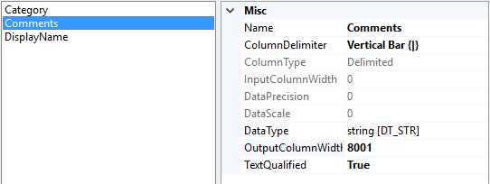 <Column Name="Comments" Length="-1" DataType="AnsiString" Delimiter="VerticalBar" />