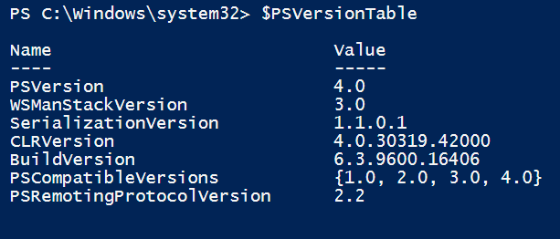 如何获得(WinRM)版本?我在$PSVersionTable变量的输出中没有看到这个信息: