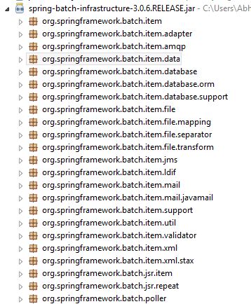 我是春天的新手。我正在尝试使用.xls读取一个PoiItemReader文件。但是,在我的jar中,org.Spring Frawork.batch.item.excel.*包不可用。