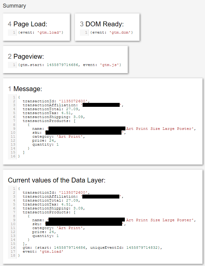 我看到访客,页面请求等,但没有交易/转换出现在谷歌分析。它最近才开始工作,但自从我上一次代码推送之后,它就没有记录任何事务(尽管在这段时间里有很多事务)。
