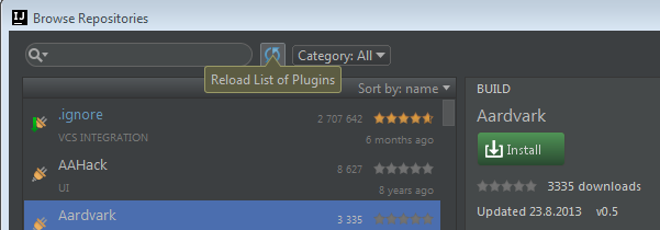 我的第一个用例是IDEA 15 (Community)似乎没有配置一个存储库。除了单击插件之外,设置窗口/对话中的*Plugins“选项卡支持三个操作。