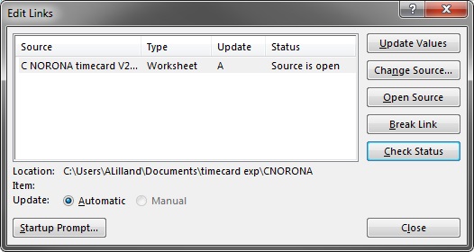 下面是一个例子:我在一个选项卡上有数百个单元格连接到这个外部电子表格