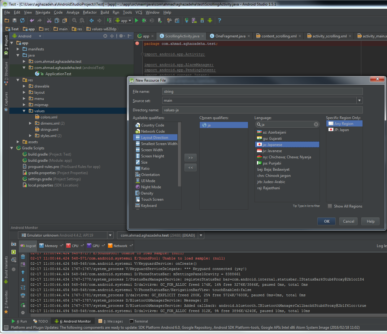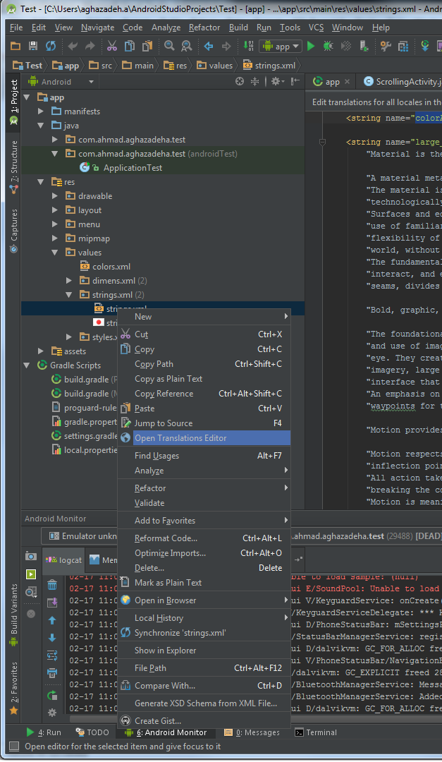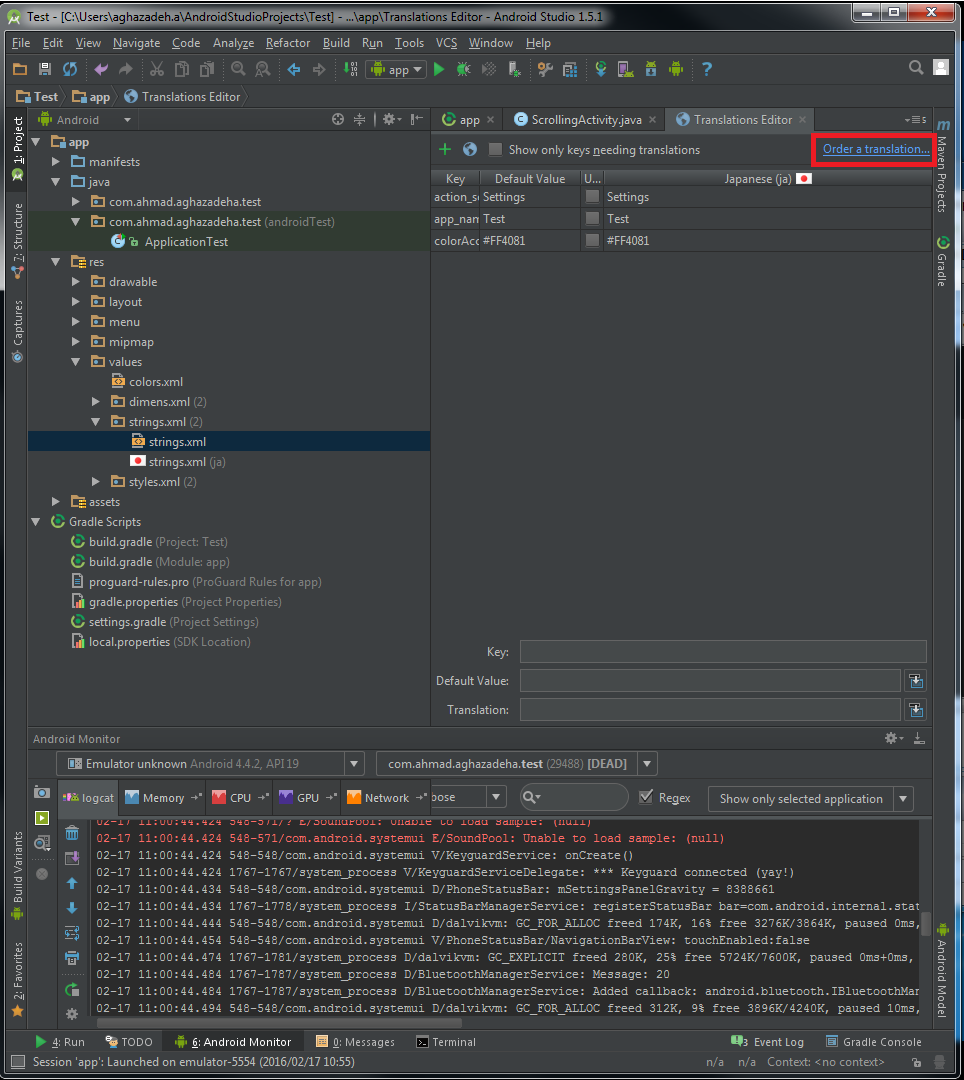 大家好,想知道如何在Android上用本地化把英语翻译成日语?我找到了一些教程,但是他们用strings.xml翻译它。有人知道怎么用程序翻译吗?