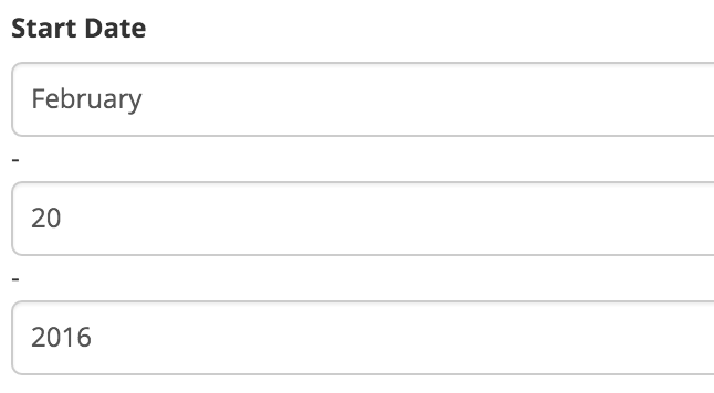 return $this->dateTime($fieldName, $dateFormat, null, $options);但在函数dateTime()中,我迷路了。是否有任何更新的帮助输出或有一个简单的技巧来改变HTML输出格式?