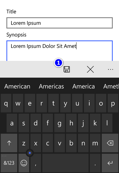 在Windows Phone 8.1中,当显示Keyboard时,如果我按下Save,它将执行OnSave方法。但是在UWP中,按保存将隐藏Keyboard而不是执行Click事件。