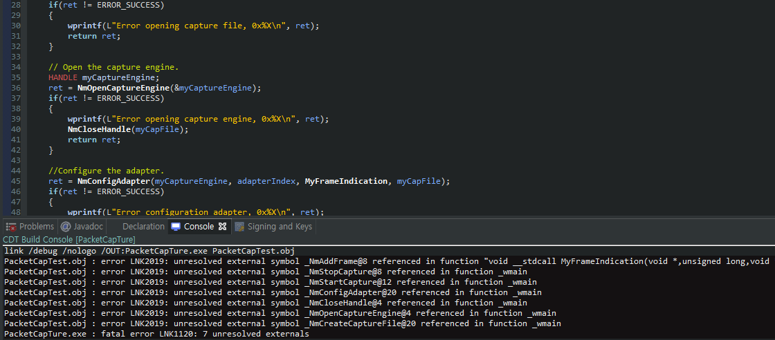 ret = NmConfigAdapter(myCaptureEngine, adapterIndex, MyFrameIndication, myCapFile);