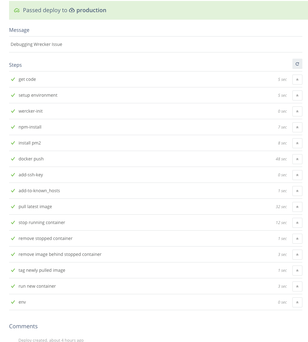 因此,我将SSH放入我的服务器和在Wercker部署之后运行的docker容器中,使用: