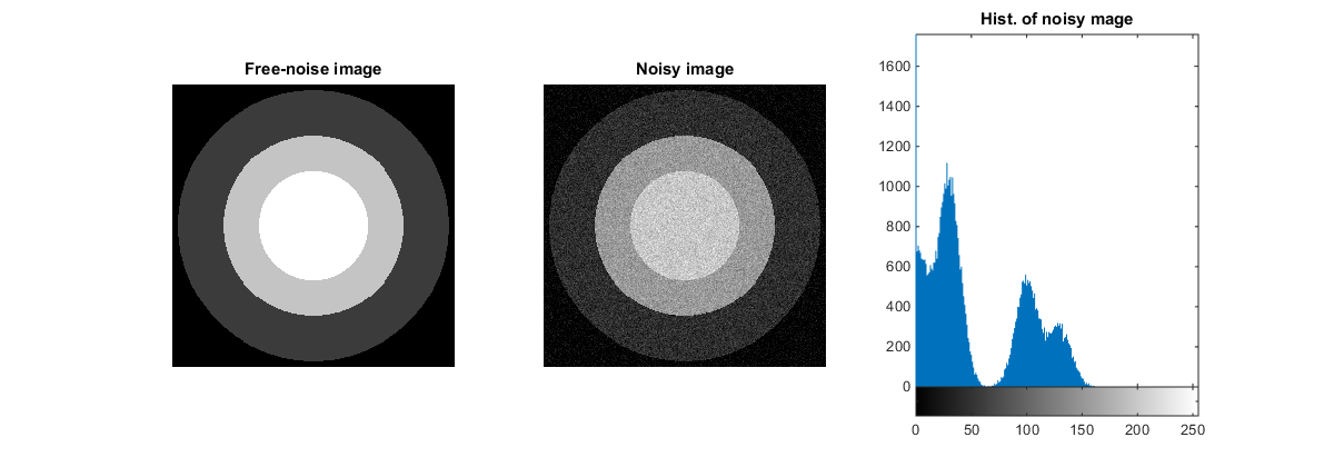 subplot(131);imshow(grayImage,[]); title('Free-noise image');