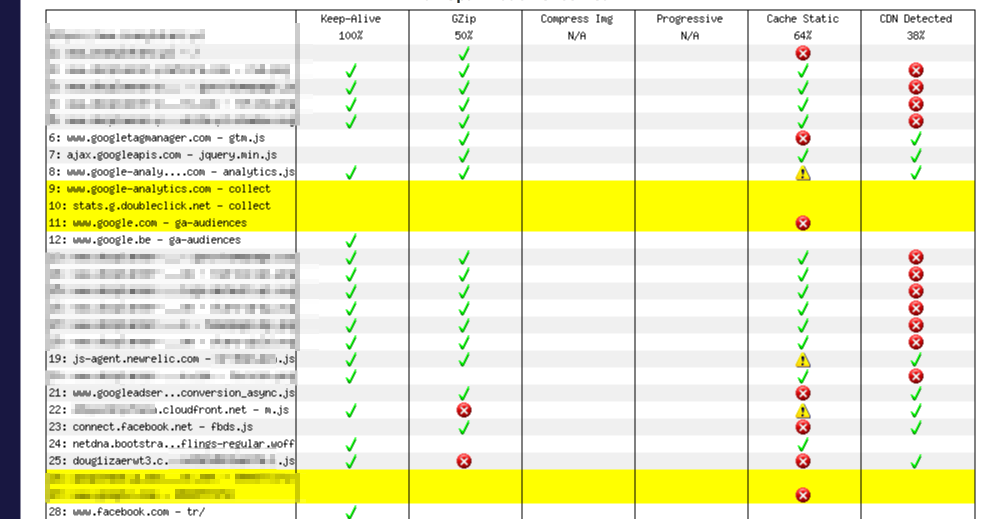 我做了一些性能优化(并使用webpagetest.org进行了测试),但在CDN检测方面仍然存在问题。看上去像在屏幕上: