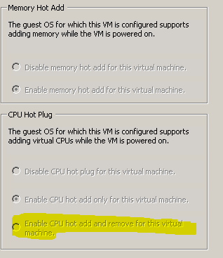:Windows 2012 (标准和数据中心版)和Windows 2008数据中心版支持CPU热添加,但不支持CPU热删除。