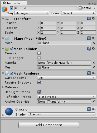 我是从基本和遵循团结官方教程在团结网站和youtube频道。我想在平面上滚动一个带有x,y,z轴的球,但如下代码所示,我的球只传递给-y,它不会在舞台上移动,它只会下降,跟随轴Y (-42.83892)。