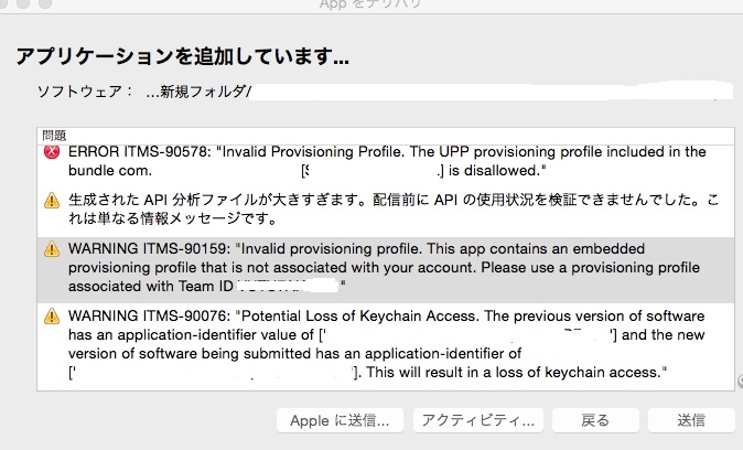 错误ITMS-90578:“无效的配置文件。包含在包com.xxxx.mybundle My中的UPP配置文件是不允许的。”