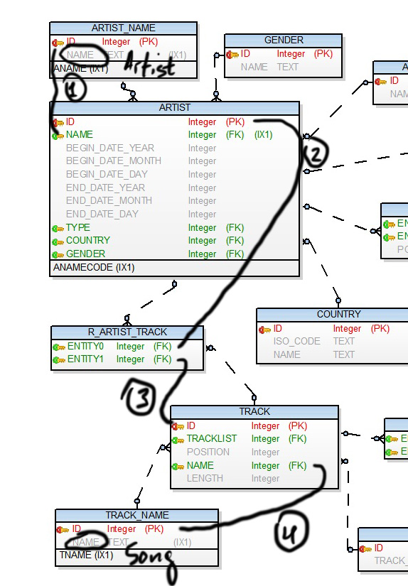 inner join track_name tn ON tn.id = t.id;您需要4个联接,我在这张图片上显示了原因: