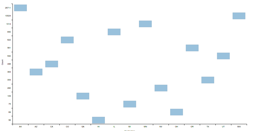 Object { Year: "2006", Origin: "AK", Destination: "OH", Count: 68 }我怎么才能让它看起来像直方图呢?我想看看酒吧的全部长度。