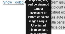 <a id="tooltipButton" href="#" data-toggle="tooltip" title='Long Text'>Show Tooltip</a>