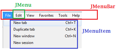JMenu fileMenu = new JMenu("File"); // This will create a menu named file