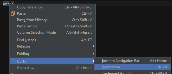 对于Python (如abs、all、any等)PyCharm有自己的.py文件,仅用于签名和文档。如果您单击其中一些函数并转到它的声明中,您可以看到它: