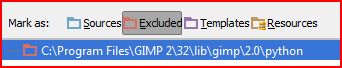 关于gimpfu.py路径的另一个注意事项。如果我理解正确,您刚刚将此路径添加到项目中。它可能有效,但正确的方法是将其添加到项目的PYTHONPATH (在项目首选项中)。有关详细手册,请参阅此链接。