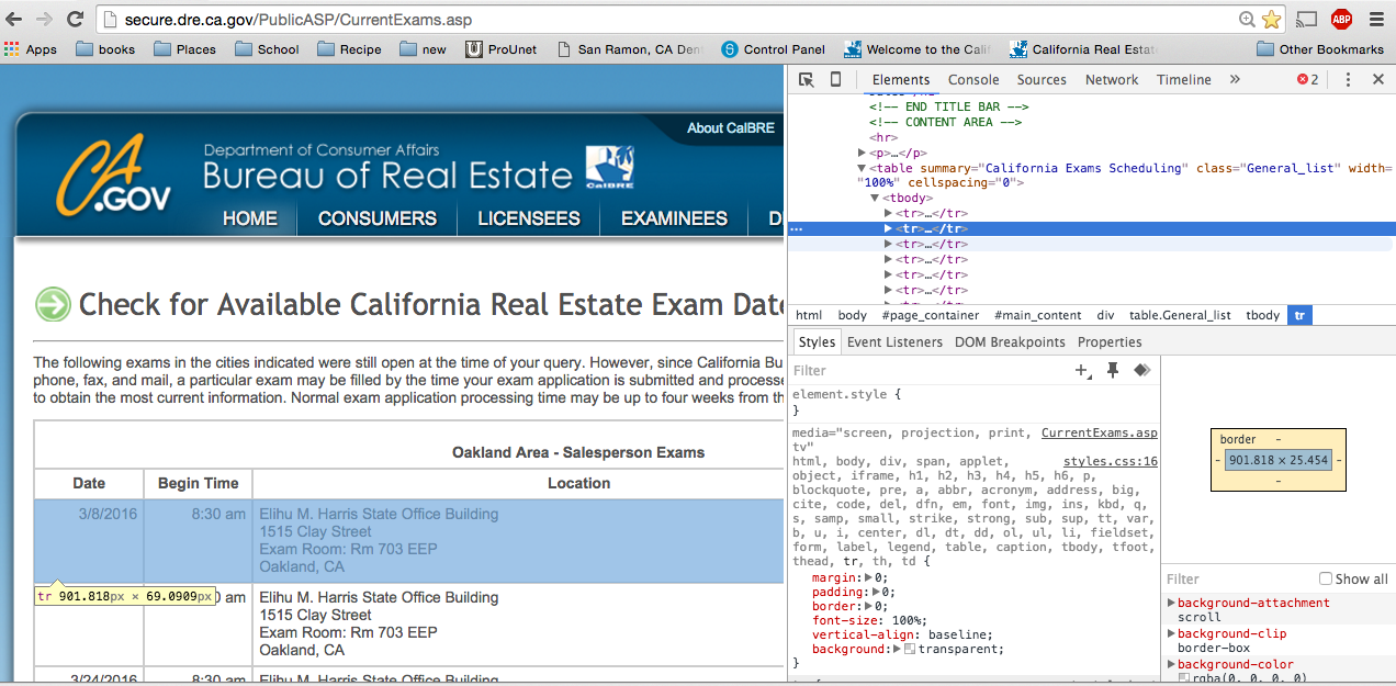 URL = "http://secure.dre.ca.gov/PublicASP/CurrentExams.asp"