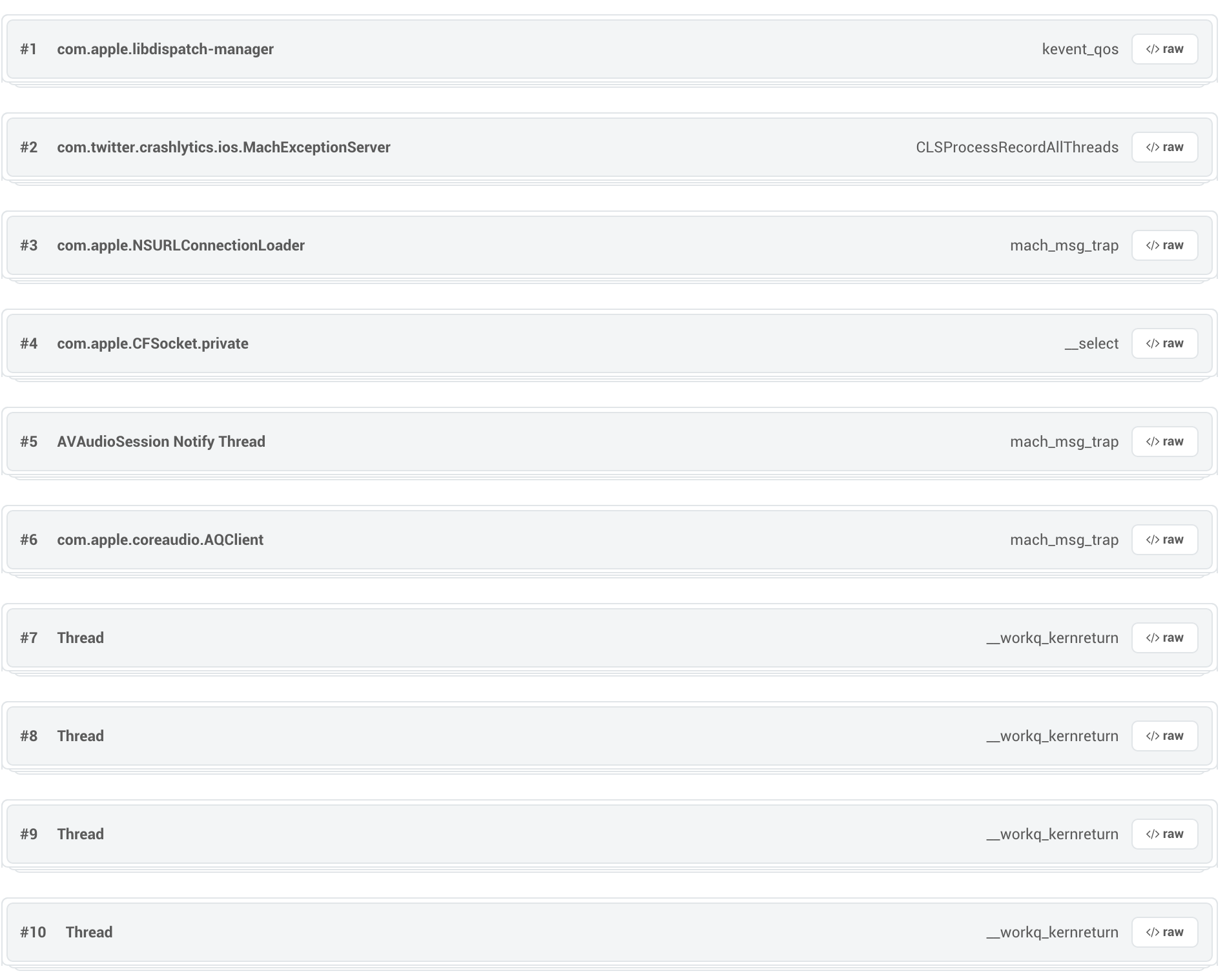 编辑:在crashlytics的崩溃报告中添加了线程的屏幕截图,以防有人想从那里得到一些信息: