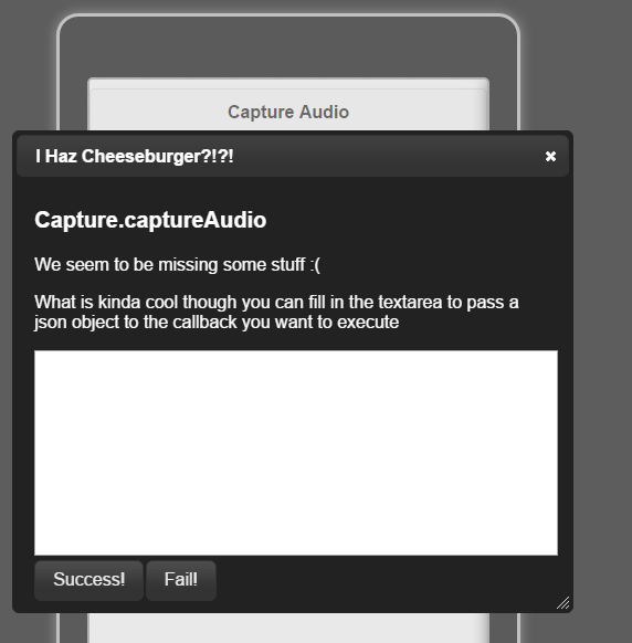 缺失exec:Capture.captureAudio TypeError:模拟器服务不是一个函数 在module.exports.exec (ripple.js:41) 在_capture (capture.js:52) 在Capture.captureAudio (capture.js:71) 在captureAudio (index.html:60) 在HTMLButtonElement.onclick (index.html:91)