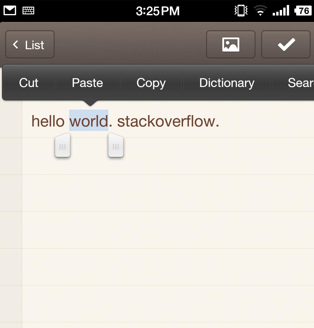 更具体地说,当我在内置应用程序中double-click文本区域时,文本将被选中,它将弹出一个菜单对其进行操作。