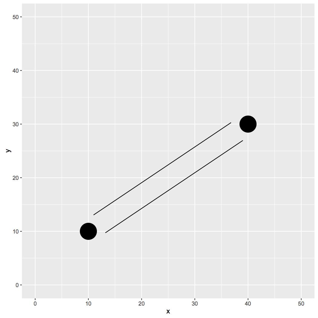 offsetDf <- data.frame('x' = c(10, 40), 'y' = c(10, 30), 'startX' = c(13, 36.5), 'startY' = c(11, 29), 'endX' = c(37.5, 12), 'endY' = c(27, 13) )