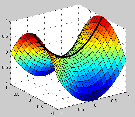 surf(X, Y, X.^2-Y.^2)