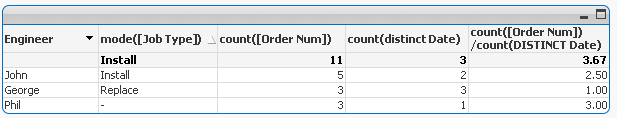OrderNum, Engineer, Job Type, Date