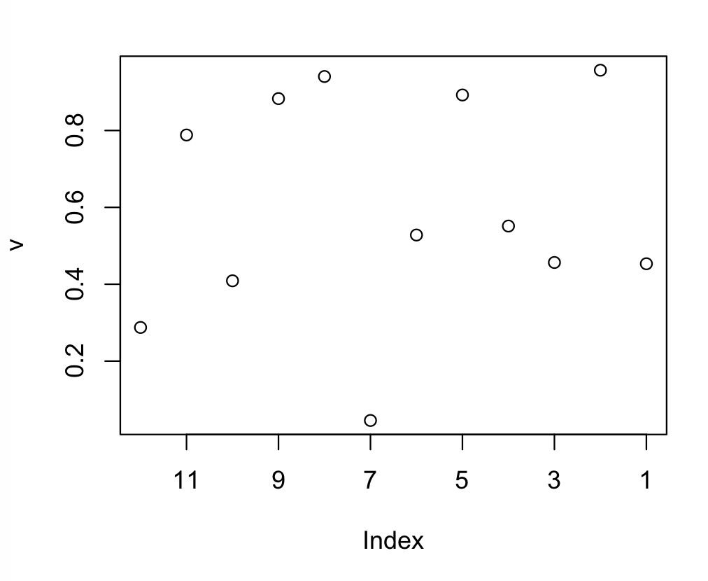 plot(runif(12))用x轴数创建一个图: 1,2,3,4和5。这样,正方向是从左到右的。