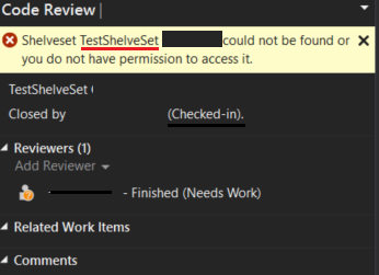 由于您已经提到,搁置集是签入的。代码评审与搁置集相关联。