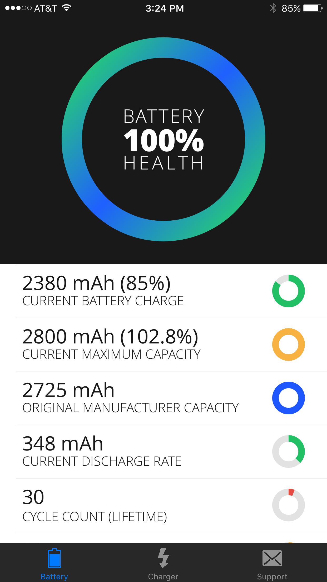 - **Current Maximum Capacity** vs **Manufacturer's Capacity**