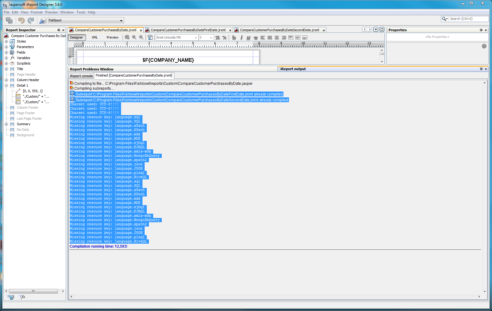 问题是,当我上传报告到Fishbowl,我的报告运行,但细节乐队的一切都是空白。