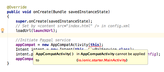 Intent intent = new Intent(this, PayPalService.class);