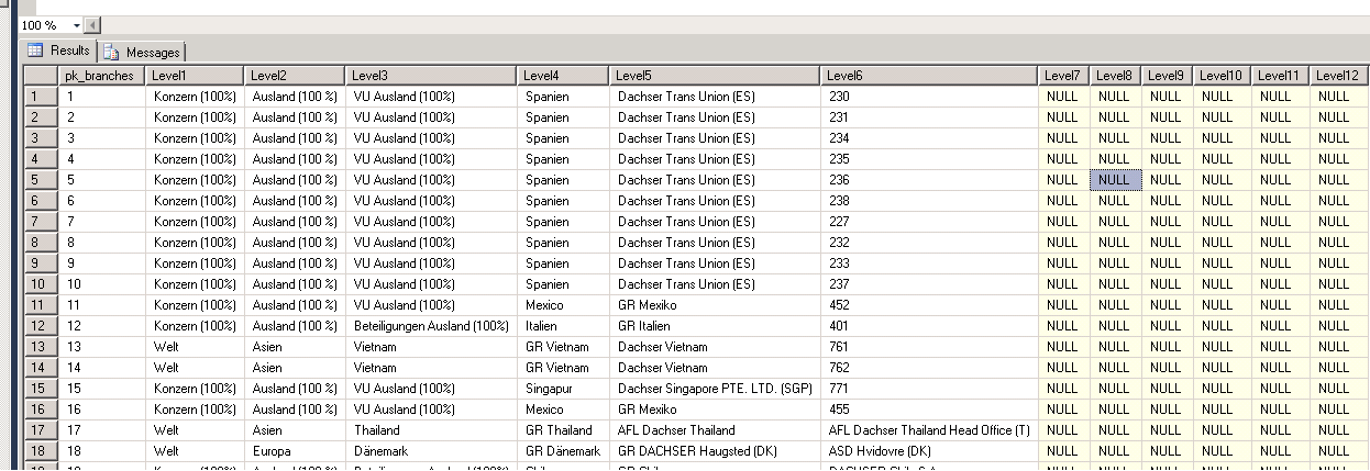 我设法在这样的表中转换了一些不可读的数据。SQL表表示多层平面层次结构。问题是,如何生成一个普通的、破旧的sql parent-child层次结构:基于下面所附的级别和结构的ID | Element | Parent?