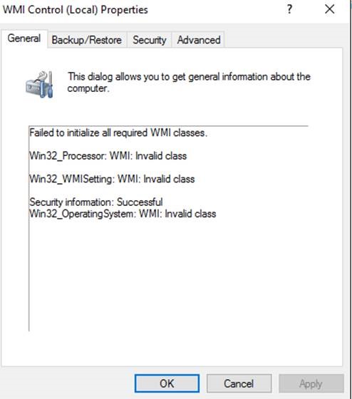 然后,在检查了博客文章之后,您需要检查哪个是丢失的WMI类,还是失败的WMI类,方法是遵循以下步骤: