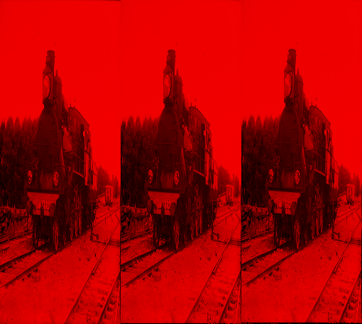 我有一个灰度图像,这是一张照片的R通道,现在我试图把R通道写成一个新的图像,这是一个RGB图像。理想情况下,新图像看起来就像旧的图像,但是是红色的。