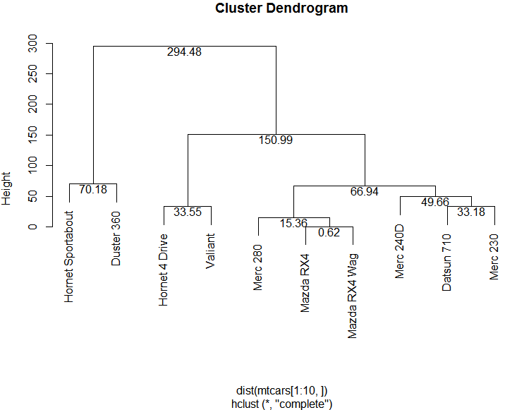 plot(hc <- hclust(dist( mtcars[1:10, ])))