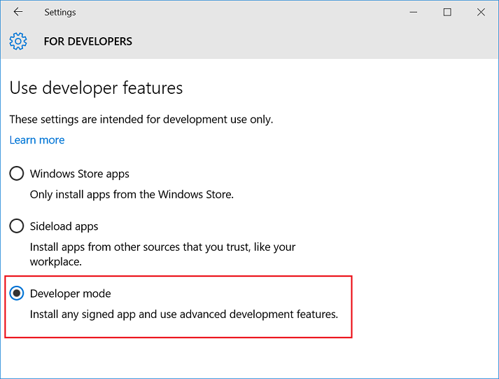 是否启用了开发人员模式选项?它应该设置在“设置”中,如下所示: