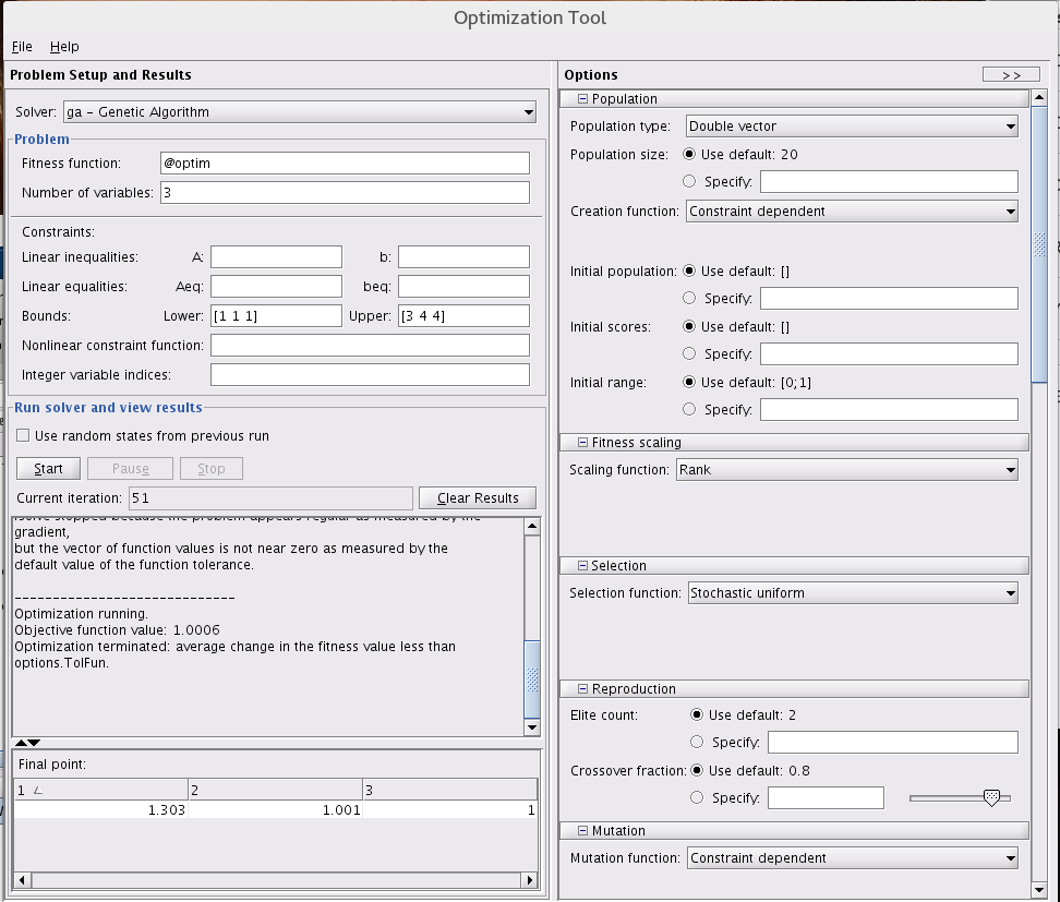 [x,fval] =ga(@optim,3,[],[],[],[],lb,ub,[],[],options);