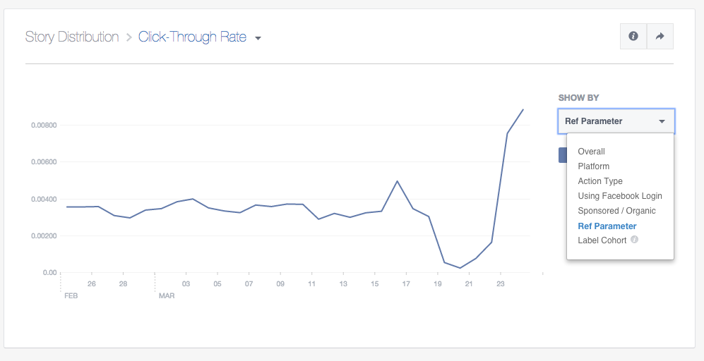 Facebook分析允许您根据"ref参数“拆分故事分发。但是,在发布帖子时,我会看不到任何关于如何设置此ref参数的说明。。