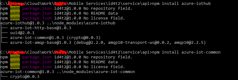 UPDATE4彼得潘给了我一个如何使用另一个版本的nodejs和npm的建议。现在我成功地安装了必要的NPM模块。但是现在Azure Mobile脚本API不起作用了,它向我展示了我试图在浏览器中获得的任何脚本上的{“代码”:404、“错误”:“错误:未找到”}。