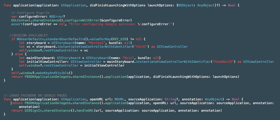 P.S.我没有在这里添加GIDSignInDelegate到AppDelegate,因为我计划使用VC来处理登录逻辑,如下所示.