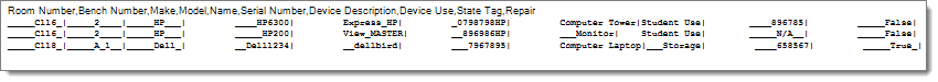 e.Graphics.DrawString("Room Number,Bench Number,Make,Model,Name,Serial Number,Device Description,Device Use,State Tag,Repair", lst_print_box.Font, Brushes.Black, startX, startY - 16)