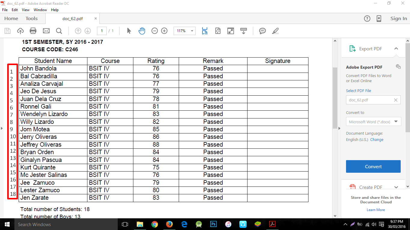 $pdf->Cell(30,5,'Course',1,'','C');