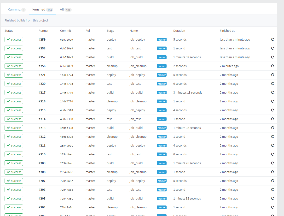 下图显示了所有以前的构建日志: